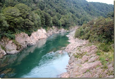 Next day we stopped at the Buller Gorge. It claims the longest swing bridge in New Zealand at 360 feet. Swing bridge is Kiwi talk for a suspension bridge. I call a swing bridge one of those rotating railroad bridges over water ways. But this one does swing when you get on it.