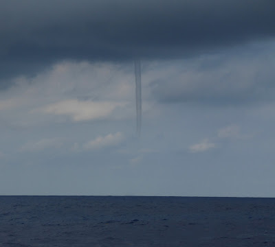 This tornado on water chased us for near a half hour. I've never seen a waterspout last that long and appear so large before.